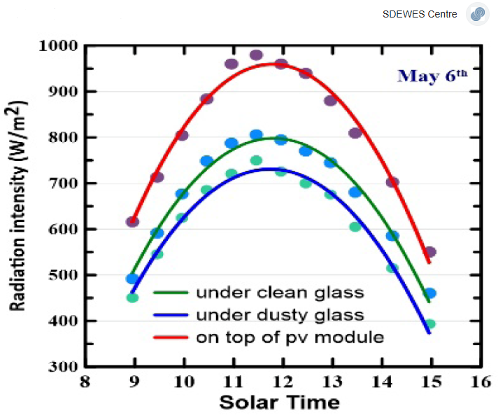 تراكم الغبار والأتربة وحتى فضلات الطيور يقلل من نفاذية ضوء الشمس إلى خلايا الألواح الكهروضوئية، مما يؤدي إلى انخفاض كفاءة توليد الكهرباء بنسبة قد تصل إلى 25% في بعض المناطق الجافة أو الصناعية.